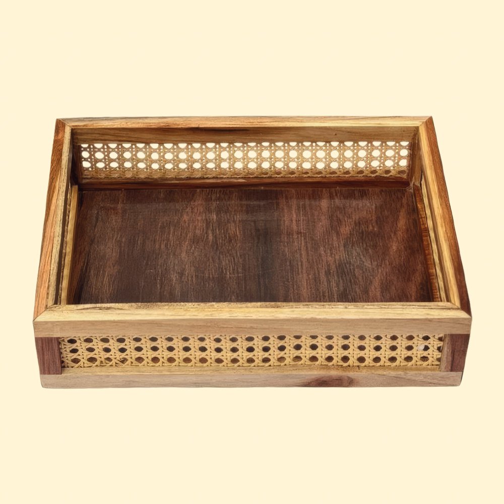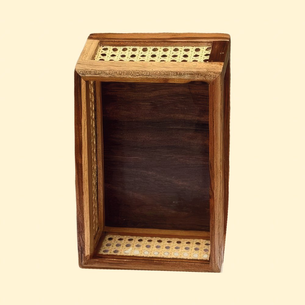 Ratan Series Teak Wooden Organiser (Natural)